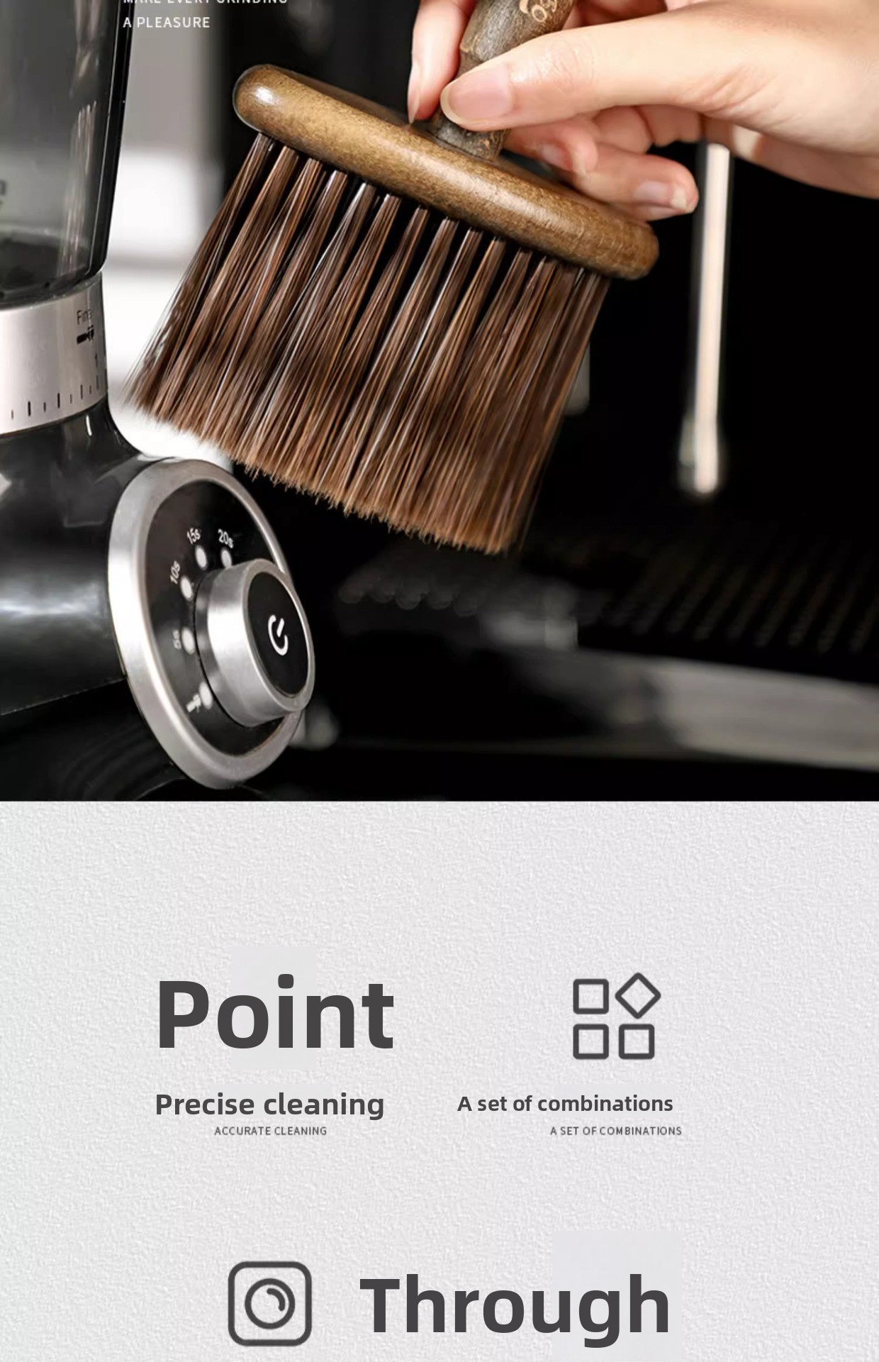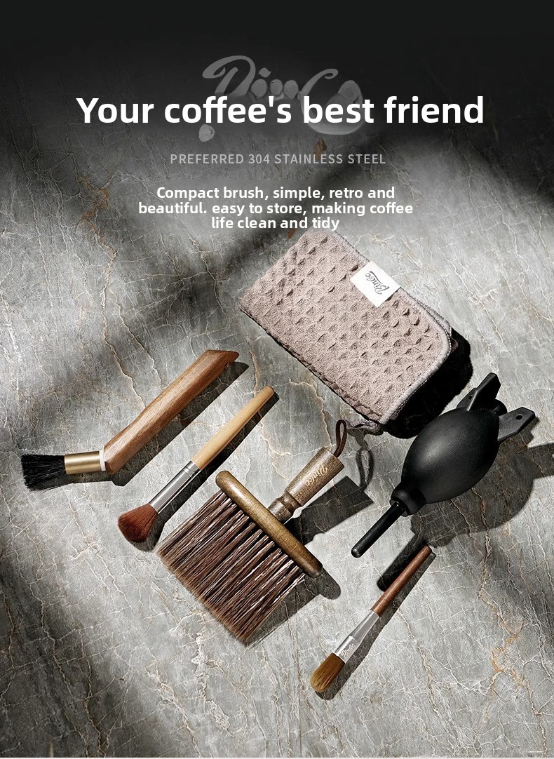 Product Types: Grinder cleaning brush, coffee powder brush, brewing head brush, waffle square scarf