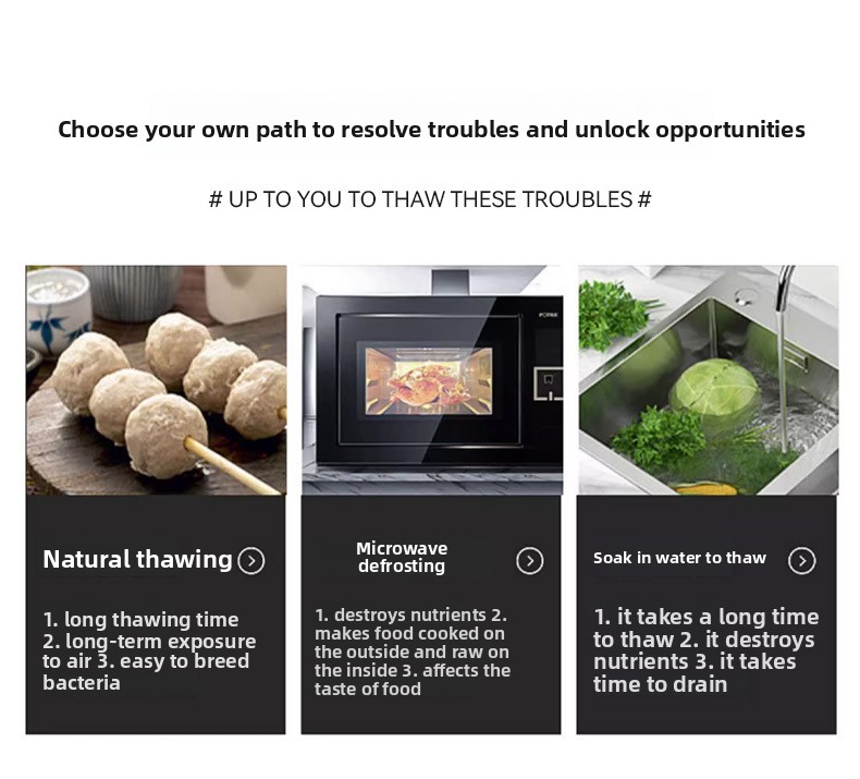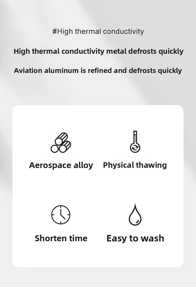 Fast Thawing: Efficient heat conduction technology quickly thaws frozen food, saving time.
